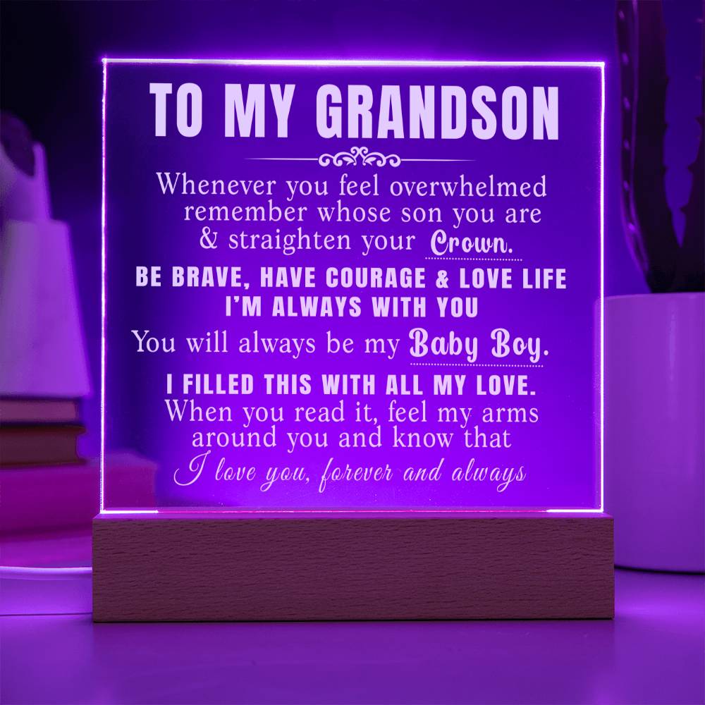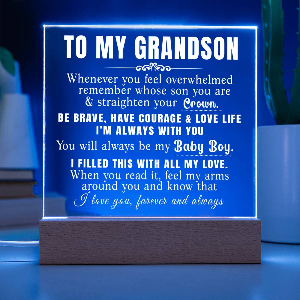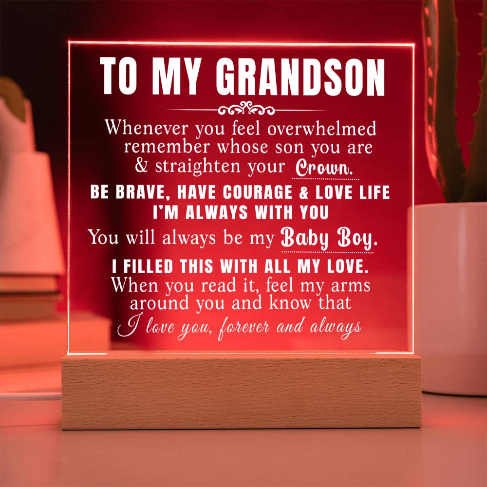 This personalized acrylic plaque is a perfect gift your Grandson can treasure forever.